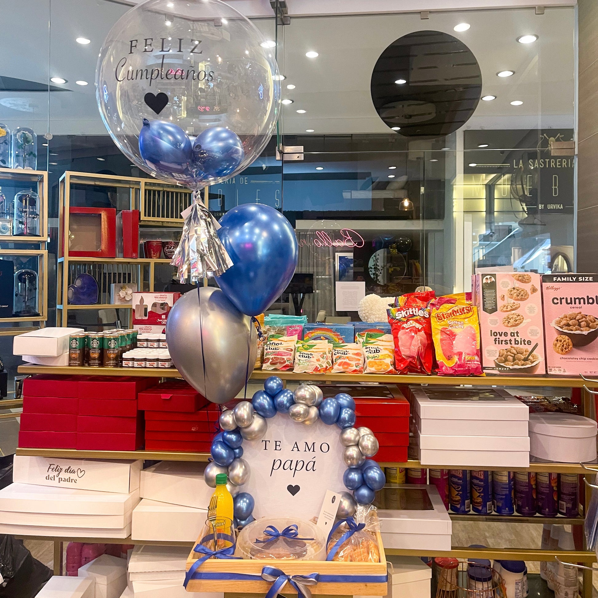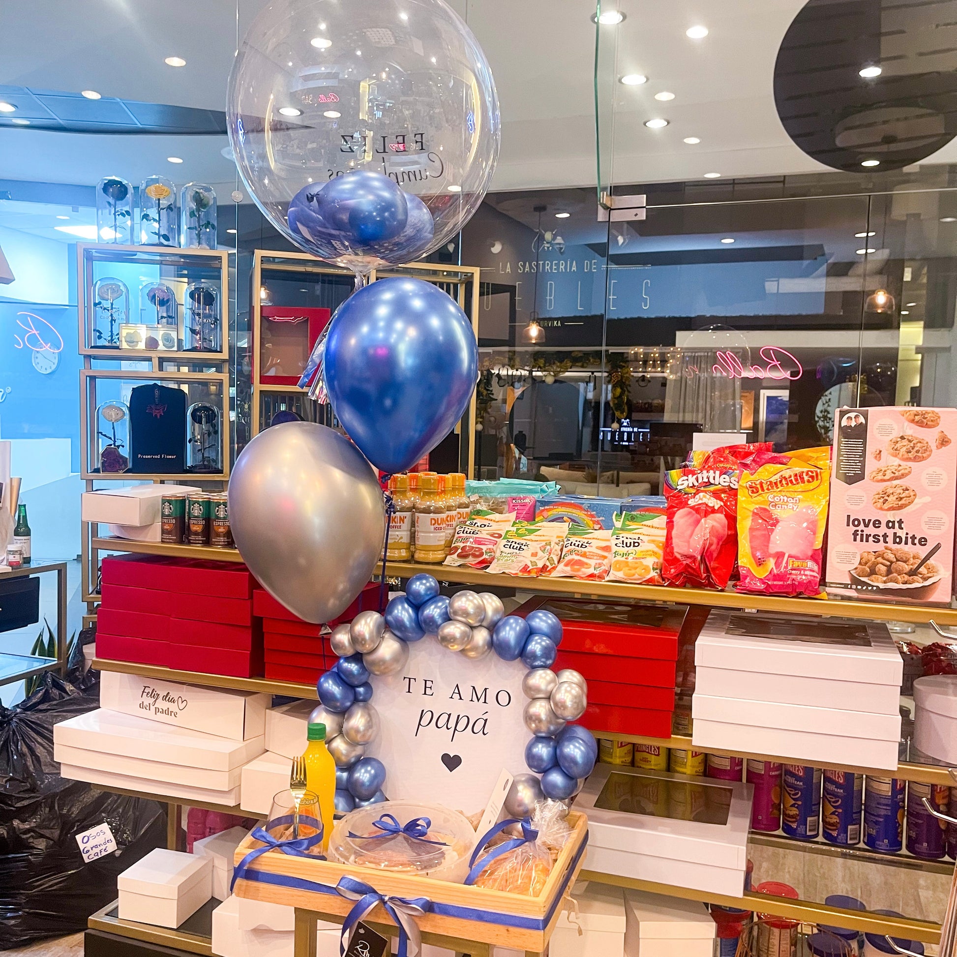 - Fondo en la bandeja con texto al gusto y globos pegados